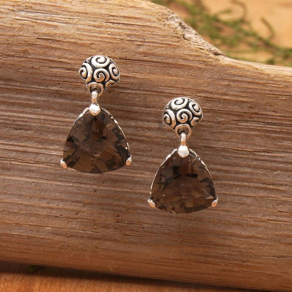 Indonesian Smoky Quartz Sterling Silver Earrings 'Mystic Trinity' Item ID: 2671700599