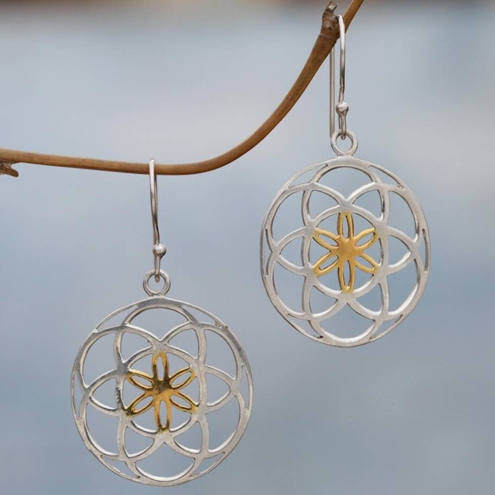 Indonesian Sterling Silver and Gold Plated Dangle Earrings 'Blooms of Life' Item ID: 2670282450