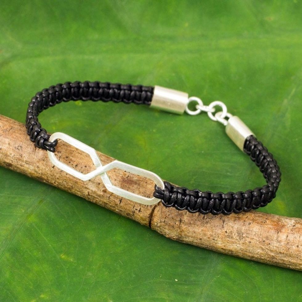 Infinity Symbol Pendant Bracelet on Black Leather Wristband 'Infinite Friendship in Black' Item ID: 2671801856
