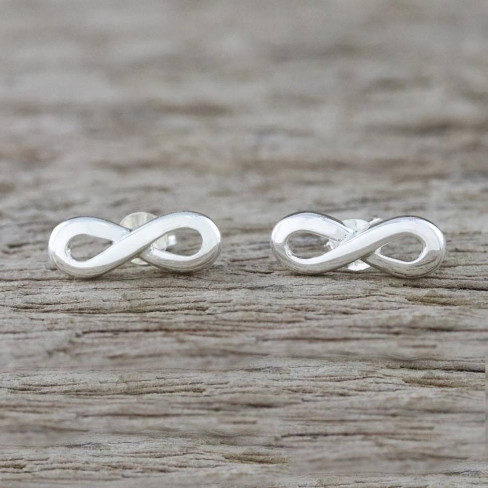 Infinity Symbol Sterling Silver Earrings from Thailand 'Shining Infinity' Item ID: 2669926110