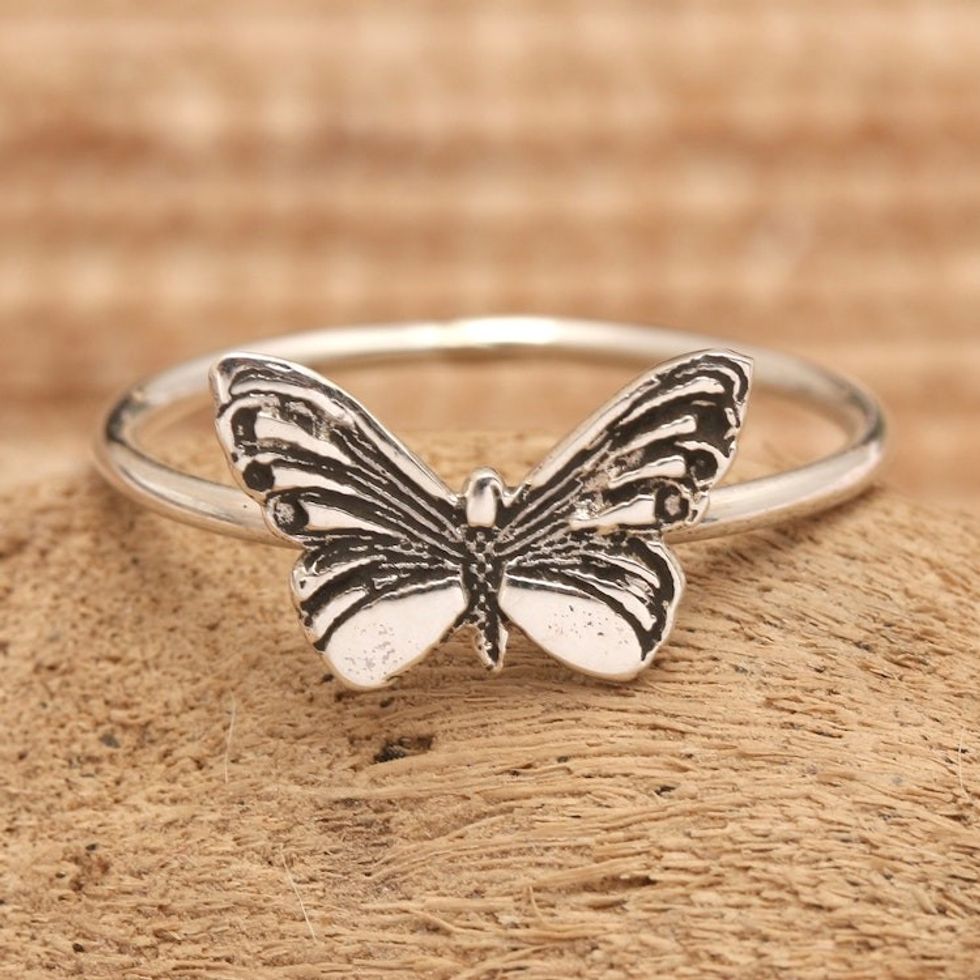 Inspirational Butterfly-Themed Sterling Silver Cocktail Ring 'Fluttering Life' Item ID: 2671765360