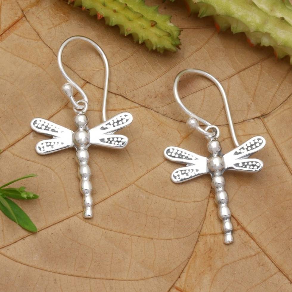 Inspirational Dragonfly Sterling Silver Dangle Earrings 'Paradise Dragonfly' Item ID: 2671670071