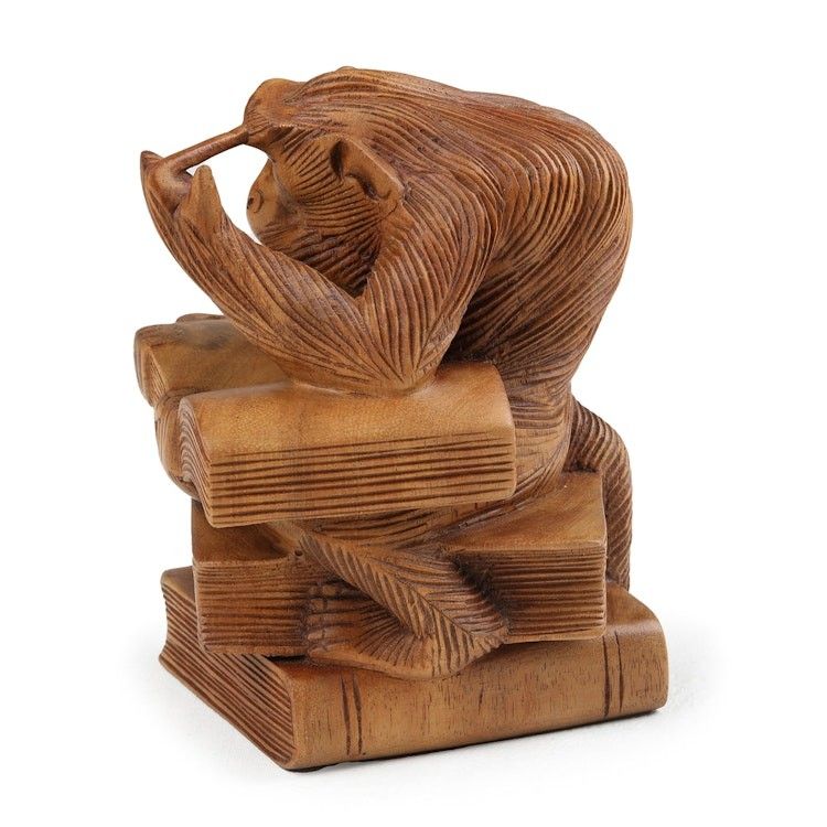 Inspirational Monkey-Themed Suar Wood Sculpture from Bali 'Diligent Study' Item ID: 2671765220