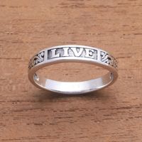 Inspirational Sterling Silver Band Ring from Bali 'Live Swirls'