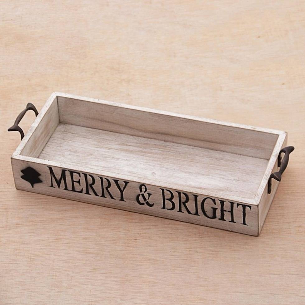 Inspirational Wood Decorative Tray with Handles from Java 'Merry and Bright' Item ID: 2671736768