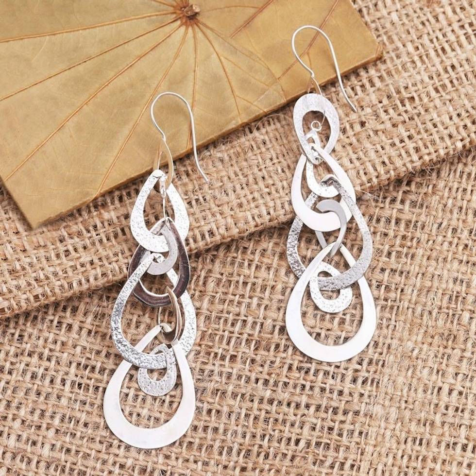 Interlocking Sterling Silver Droplet Dangle Earrings 'Compilation of Tears' Item ID: 2671745006