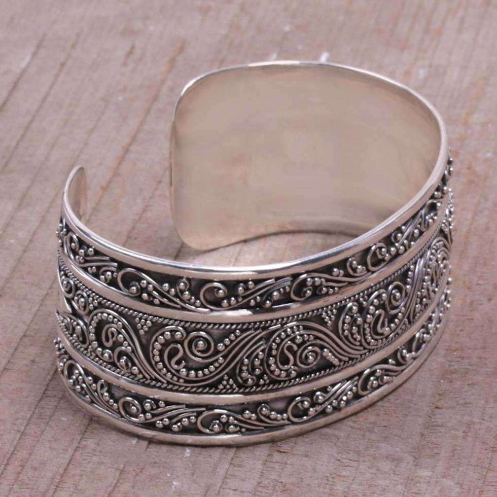 Intricate Sterling Silver Cuff Bracelet from Bali 'Temple Vine' Item ID: 2671820951