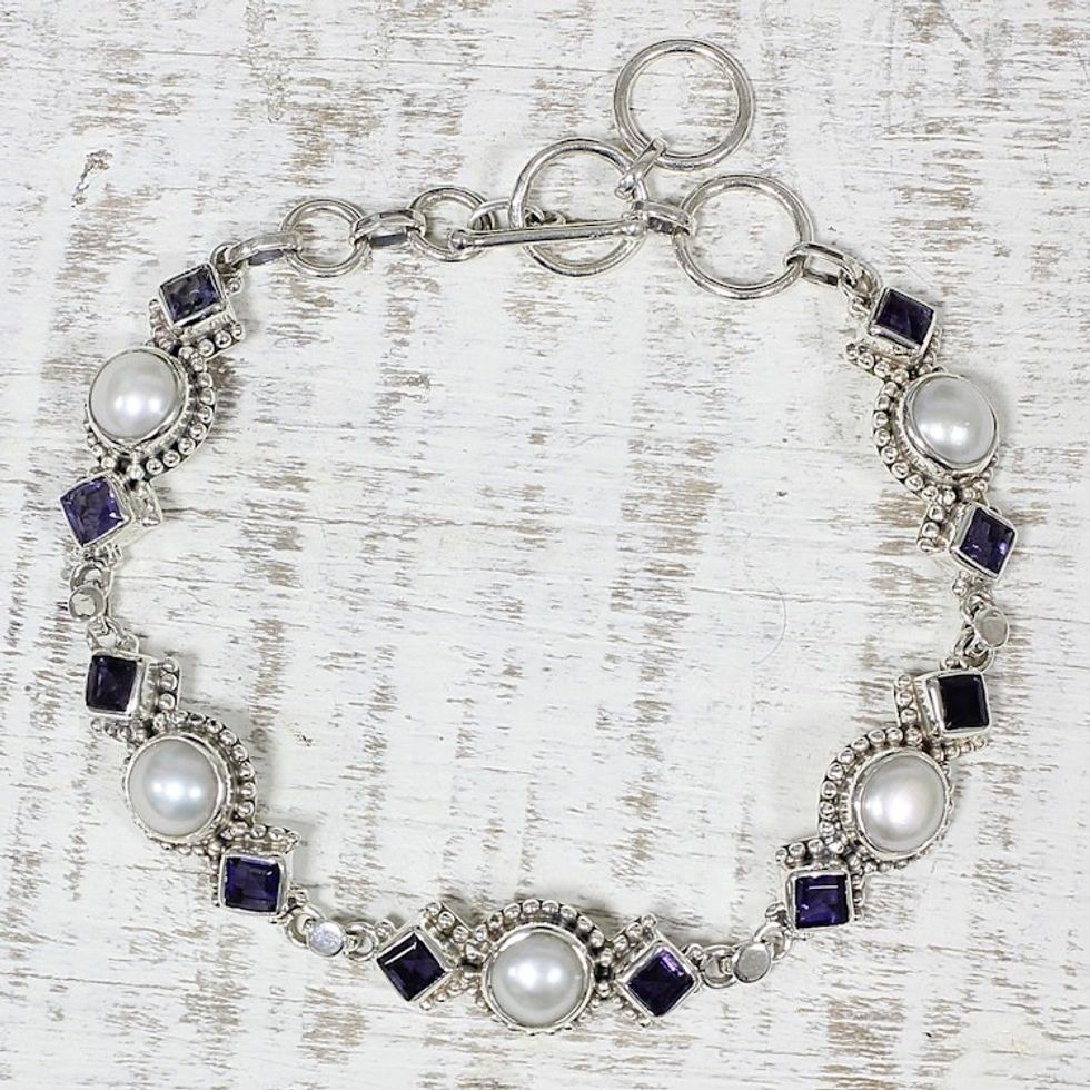 Iolite and Cultured Pearl Link Bracelet from India 'Blue Palace' Item ID: 2671791652