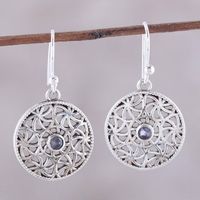 Iolite and Sterling Silver Dangle Earrings from India 'Circular Stars' Item ID: 2676663996