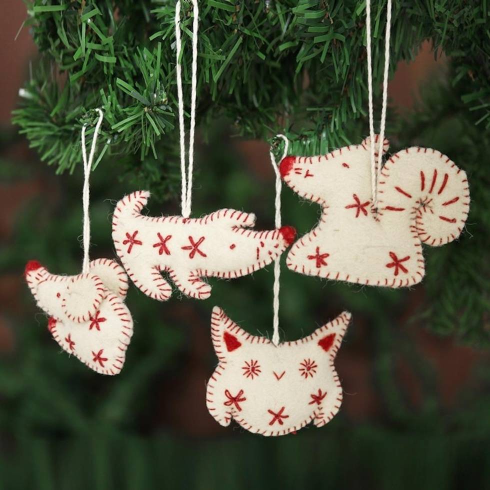 Ivory and Red Wool Felt Animal Ornaments Set of 4 'Unity' Item ID: 2671793911