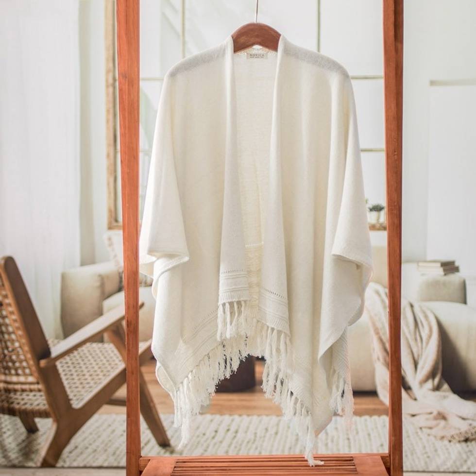 Ivory Cotton Ruana with Fringes Handloomed in Guatemala 'Ancestral Alabaster' Item ID: 2671625960