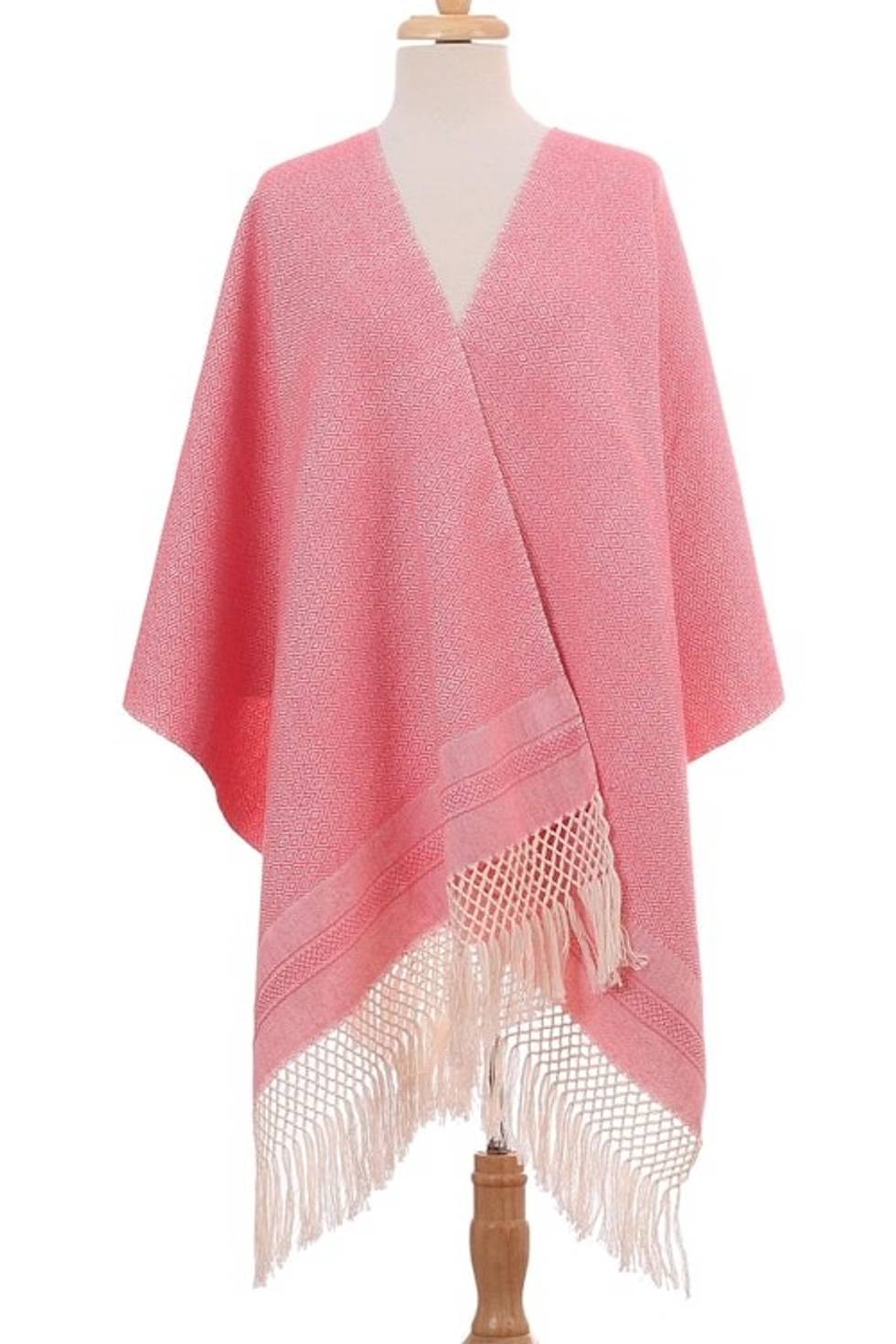 Ivory Diamond Motif on Rose Pink Handwoven Cotton Rebozo 'Diamond Blush' Item ID: 2671639050
