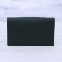 Ivy Green Pebbled Leather Bi-Fold Wallet from India 'Forest Grandeur' Item ID: 2671790803