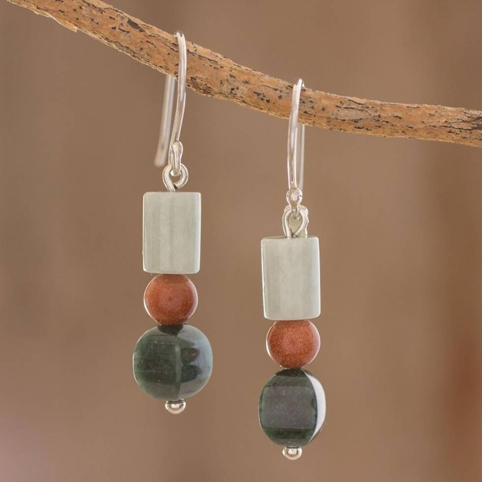 Jade and Aventurine Dangle Earrings from Guatemala 'Earthen Fruits' Item ID: 2669933188