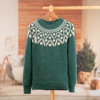 Jade and Ivory 100 Alpaca Pullover Sweater from Peru 'Jade Geometry' Item ID: 2670323191