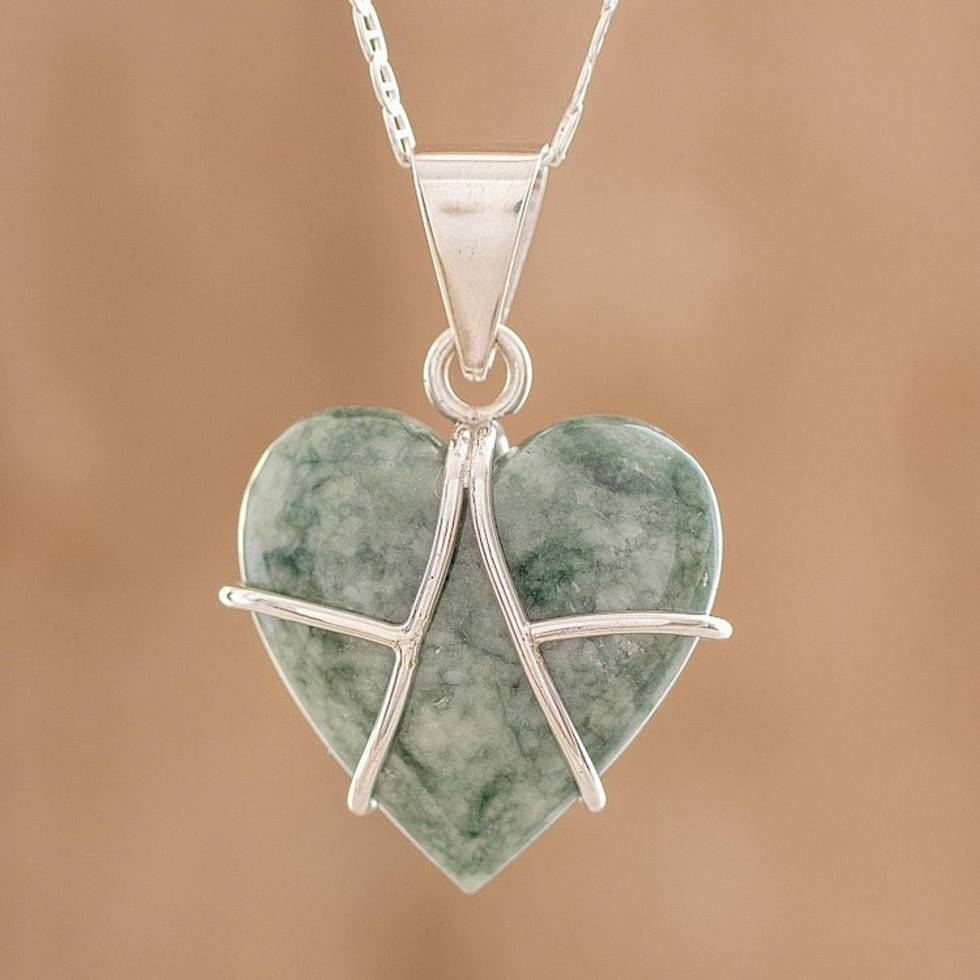 Jade and Sterling Silver Heart Pendant Necklace 'Magical Destiny' Item ID: 2671626737
