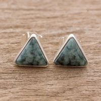 Jade and Sterling Silver Triangle Stud Earrings 'Triangle Perfection' Item ID: 2671777524