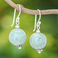 Jade Bead and Sterling Silver Dangle Earrings from Thailand 'Touch of Jade' Item ID: 2669930911