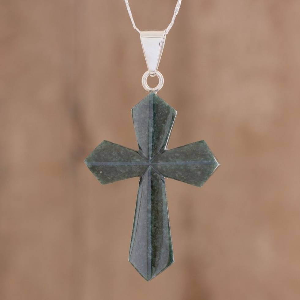 Jade Cross Necklace in Dark Green from Guatemala 'Dark Green Sacrifice of Love' Item ID: 2671777490