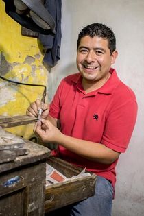 "I use gold, silver and copper in my work, and what I like best is when shoppers admire and appreciate my designs. I struggle every day to be the best, even though it can be difficult. Thank God I have the support of my wife and her designs. I'm in charge of the workshop and crafting process.