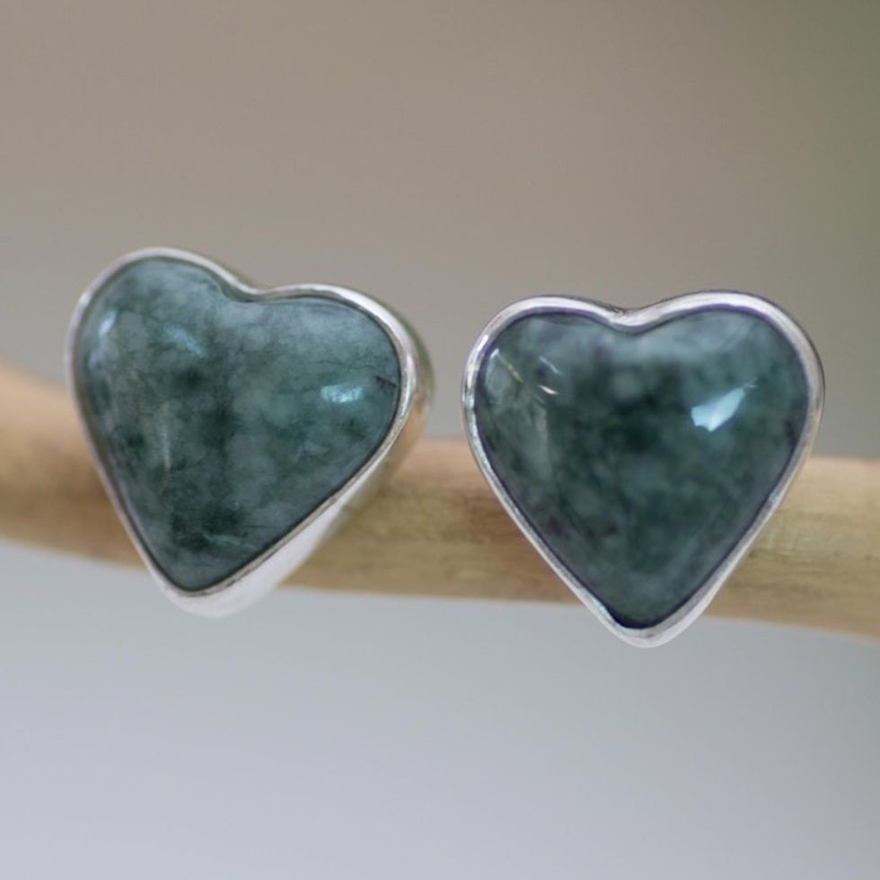 Jade Heart Earrings Artisan Crafted Jewelry 'Love Sacred' Item ID: 2671777681