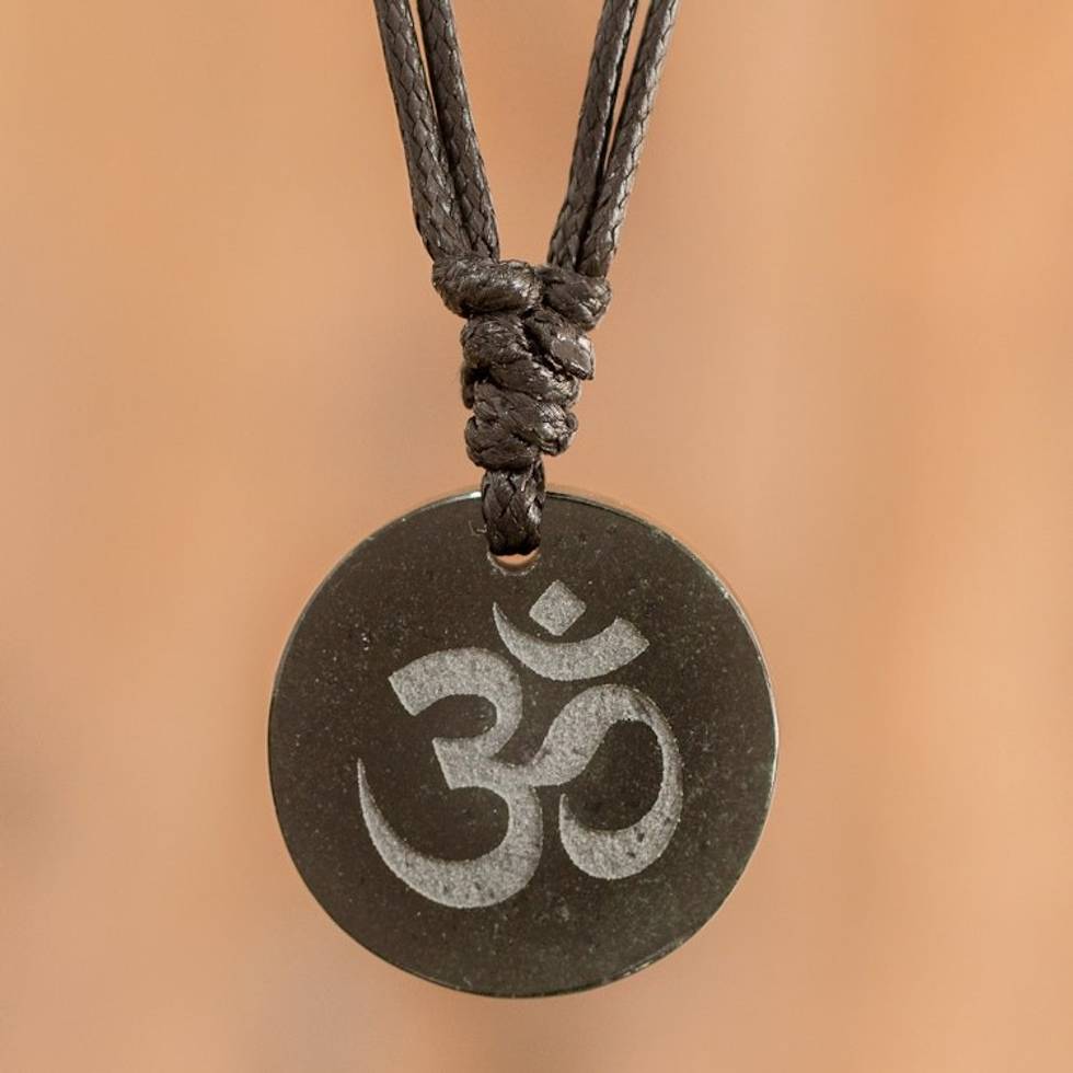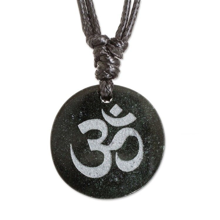 Jade Om Symbol on Cotton Cord Artisan Necklace 'Meditation II' Item ID: 2671779309