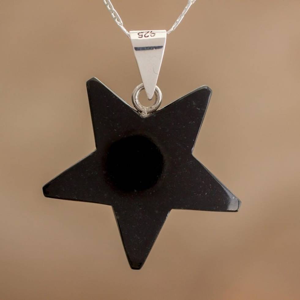 Jade Star Pendant Necklace in Black from Guatemala 'Stellar Light in Black' Item ID: 2671779318