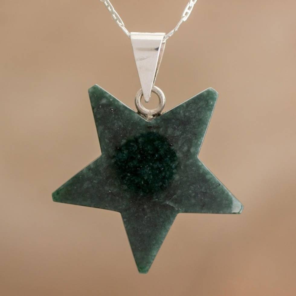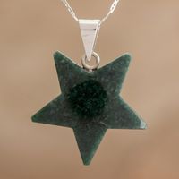 Jade Star Pendant Necklace in Dark Green from Guatemala 'Stellar Light in Dark Green' Item ID: 2671778567