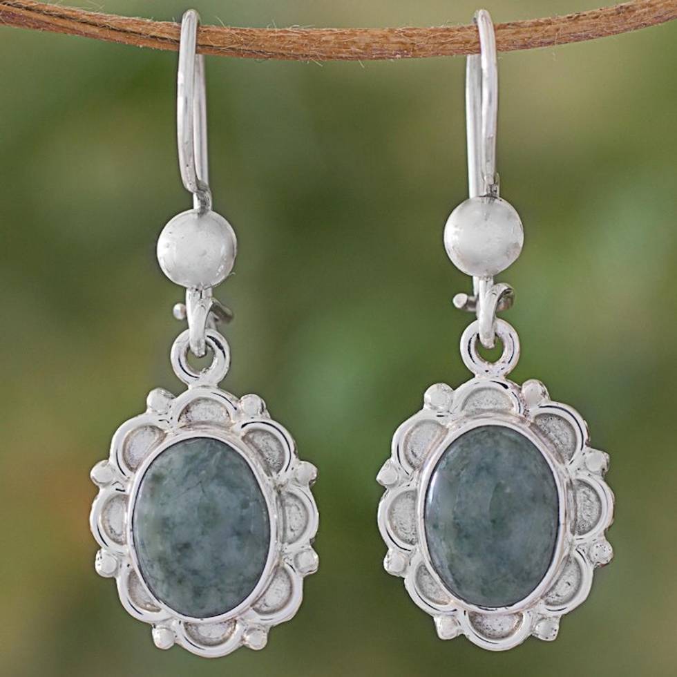 Jade Sterling Silver Oval Shape Dangle Earrings Guatemala 'Woodland Princess' Item ID: 2669933739