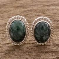 Jade stud earrings 'Dark Mystique' Item ID: 2671779178
