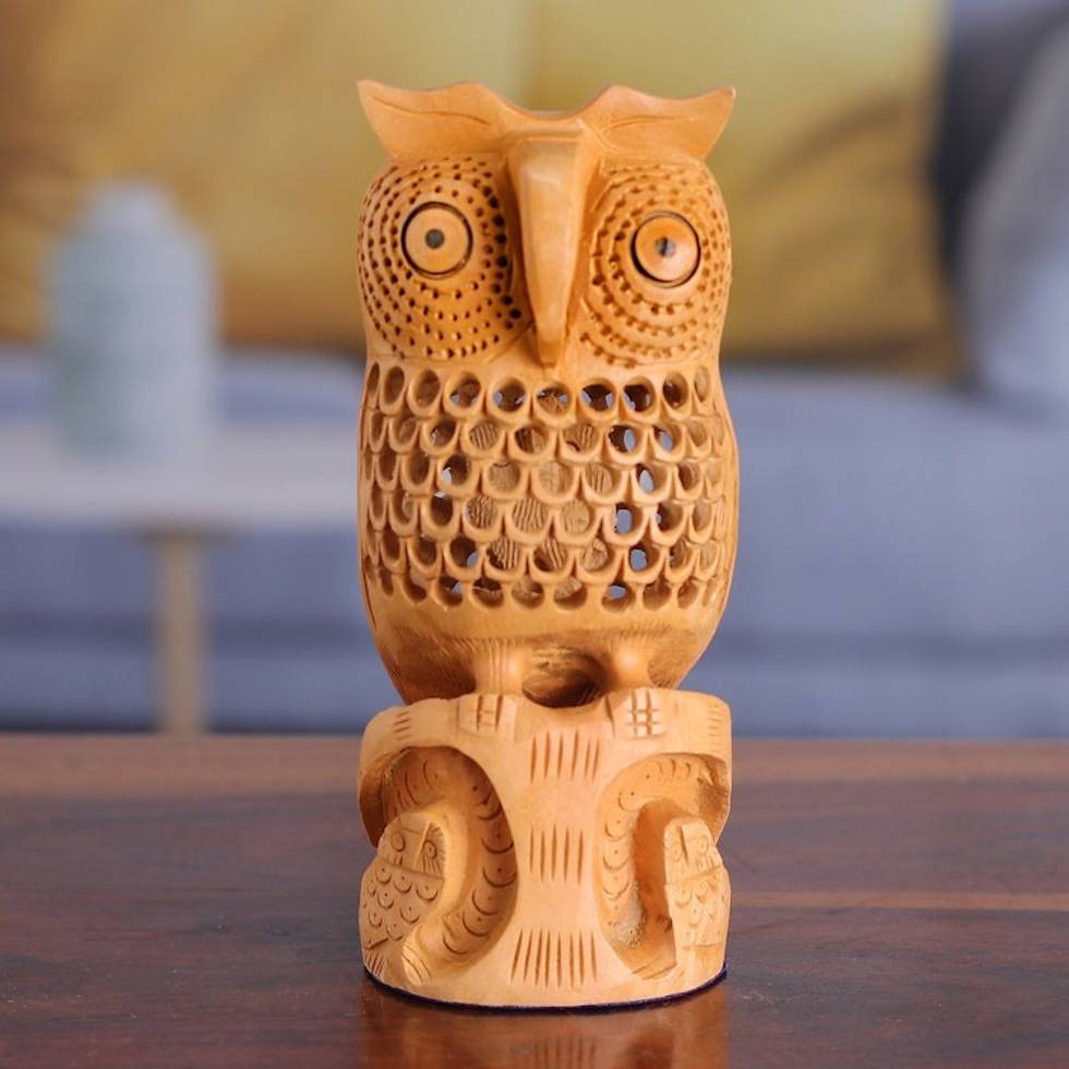 Jali Art Sculpture Hand Carved in India 'Night Owl Mom' Item ID: 2671794360