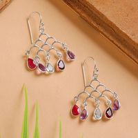 Jali-Inspired Multi-Gemstone Silver Chandelier Earrings 'Vibrant Teardrops' Item ID: 2676664374