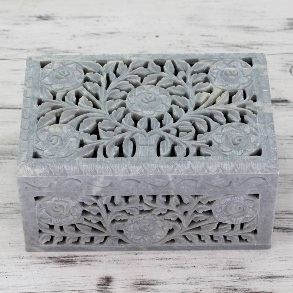 Jali Soapstone Jewelry Box 'White Roses' Item ID: 2669955393