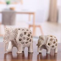 Jali-Themed 2-Piece Carved Soapstone Elephant Sculpture Set 'Elephant Bonds' Item ID: 2671624777
