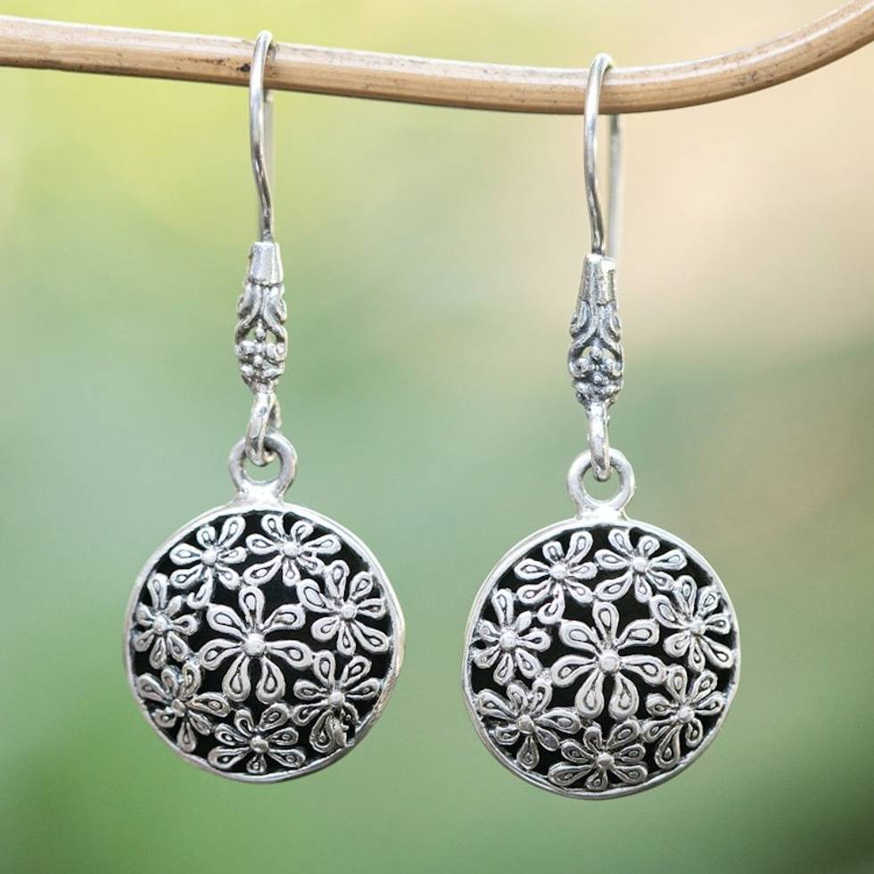 Jasmine-Themed Sterling Silver Dangle Earrings Made in Bali 'Jasmine World' Item ID: 2671765543