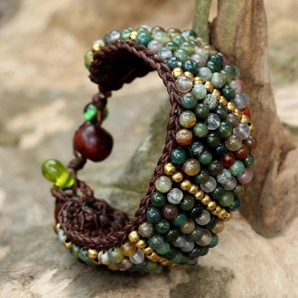 I absolutely love Tiraphan Hasub's bracelets. I have several in my collection, and I just ordered another with the Rose Quartz. These are the perfect gift for a friend that loves nature or bohemian style. The little bells on the clasp make a wonderful tinkling sound when worn.