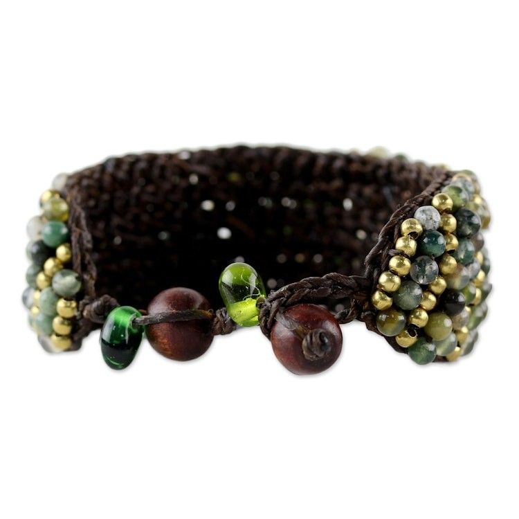 Jasper and Brass Beaded Wristband Bracelet from Thailand 'Thai Smile' Item ID: 2671801523