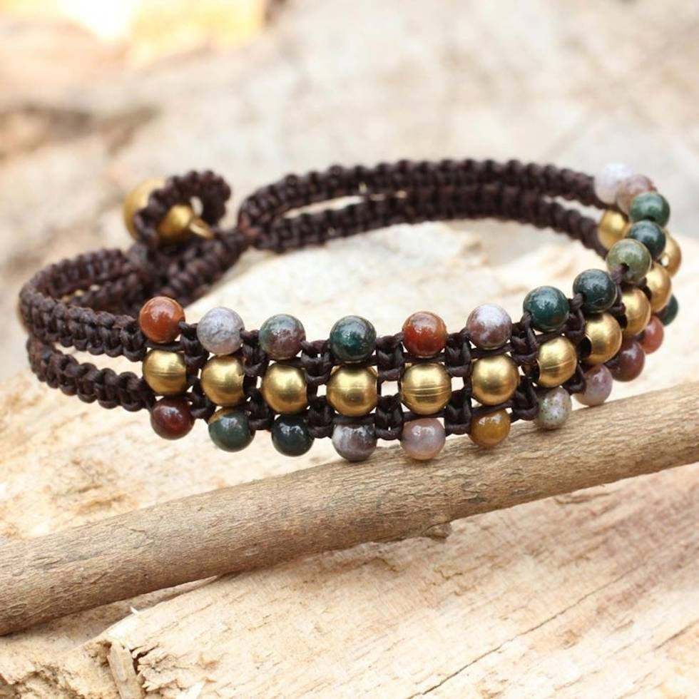 Jasper and Brass Wristband Bracelet 'Colors of Joy' Item ID: 2671802064