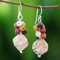 Jasper Beaded Cluster Earrings from Thailand 'Beautiful Glam' Item ID: 2671798315