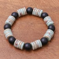 Jasper Disc and Onyx Beaded Stretch Bracelet from Thailand 'Elegant Discs' Item ID: 2671799598