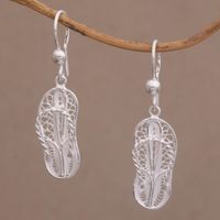 Javanese Filigree Sterling Silver Slipper Dangle Earrings 'Java Slippers' Item ID: 2671736566