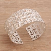 Javanese Handcrafted Sterling Silver Filigree Cuff Bracelet 'Song of Java' Item ID: 2671734448