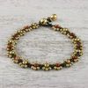 Elephant Charm Agate and Beaded Brass Anklet 'Stylish Elephant'