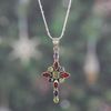 Maria Beautiful earrings that compliment a matching necklace .Pretty red and light green peridot stones in sterling.