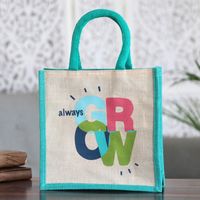 Jute and Cotton Blend Tote Bag Hand Crafted in India 'Always Grow' Item ID: 2671789158