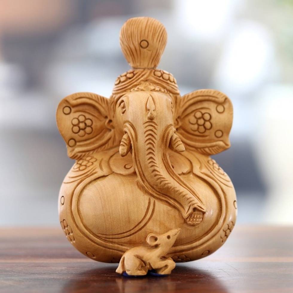 Kadam Wood Ganesha Sculpture Hand-Carved in India 'Ancestral Deity' Item ID: 2671786605