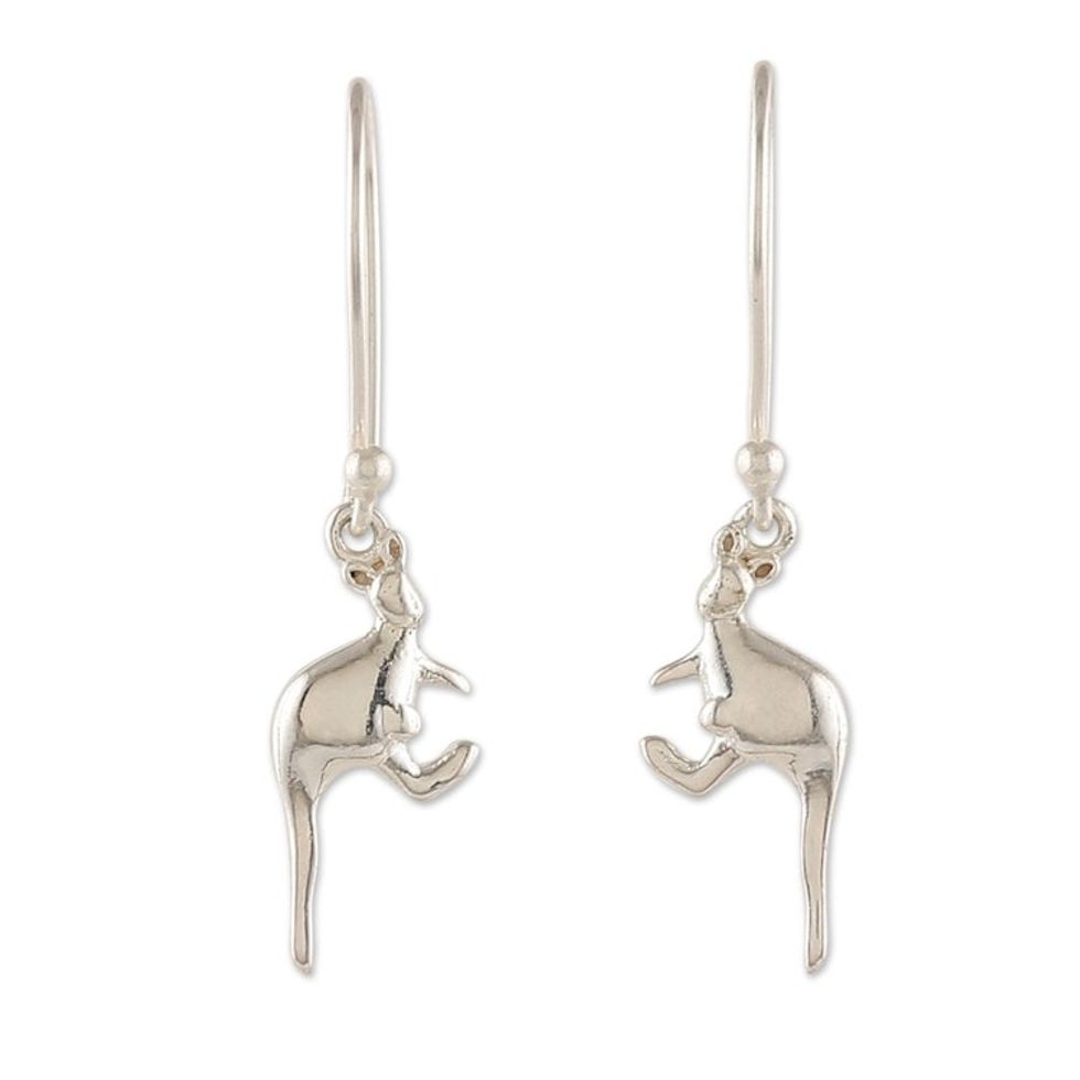 Kangaroo-Themed Polished Sterling Silver Dangle Earrings 'Enchanting Kangaroos' Item ID: 2671781744