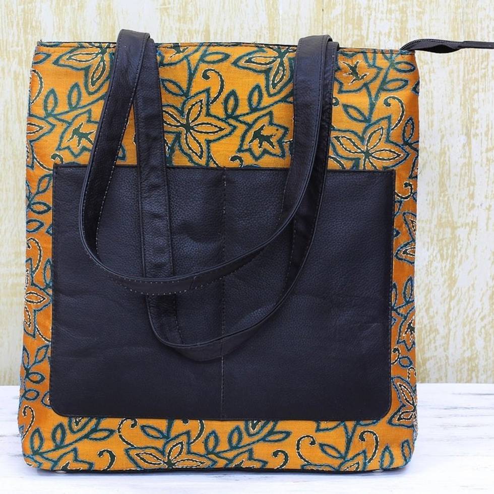 Kantha Embroidered Silk Shoulder Bag in Sunrise from India 'Divine Sunrise' Item ID: 2671793197