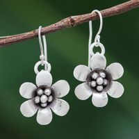 Karen Hill Tribe Silver Daisy Flower Dangle Earrings 'Delightful Daisy' Item ID: 2671798412