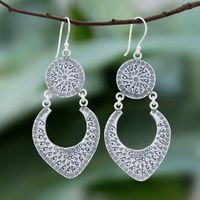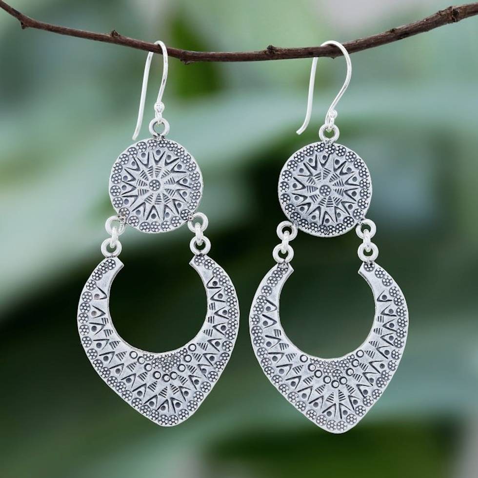 Karen Hill Tribe Silver Dangle Earrings from Thailand 'Moon Phase' Item ID: 2669930469